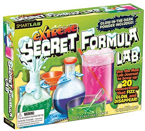 -. Binding : Toy -. Brand : SmartLab Toys -. EAN : 0719040538953 -. Feature : Fun and educational / Performance and quality tested / Great fun for children of all ages / The EXTREME version features tailored components such as a mix and measure scoop, test tubes with squisy lids and more / Kids can concoct 20 experiments that glow, ooze and stink up the kitchen -. Label : SmartLab Toys -. Manufacturer : SmartLab Toys -. ProductGroup : Toy -. ProductTypeName : TOYS_AND_GAMES -. Publisher : SmartLab Toys -. Studio : SmartLab Toys -. Title : Fun and Educational Glow in the Dark Powder Formula Lab -. UPC : 719040538953