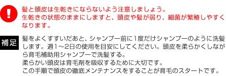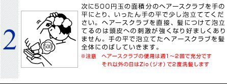 -. Feature : 薄毛が進行すると、血行不良になり毛細血管も縮小していくと言われています。すると頭皮自体も栄養不足になり、固くなるため育毛環境も悪くなるのです。植木鉢の土を想像してみてください。土が固ければ植物はシッカリ育ちません。だからいくらナノ化した育毛剤を塗布しても毛穴から浸透させることは難しいのです。 / ではどうしたらいいのでしょう?薄毛の人の頭皮に共通しがちなのが、「頭皮が固くなっている」ということです。これは毛根や血管が萎縮してくると、自然と頭皮が固くなってくるためだと言われています。 / この解決策が頭皮用スクラブです(ジオのオプション)。まずは細かく砕いたアンズ核を入れたスクラブを使って頭皮を徐々に柔らかくします。 / 頭皮が柔らかくなったあとは、育毛シャンプーで本洗髪です。髪が育ちやすい環境をつくるためには、頭皮環境を良くすること。まずはこれが育毛のスタートです。 / 頭皮や身体に影響があると考えられる成分は徹底排除しました。シリコン、パラベン、香料、着色料は使用していません。