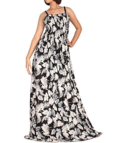 Tall Women Plus Size Maxi Dress Christmas Gift Present For Her Party Holiday Boho Strapy B&W Leaves Prints (1X)