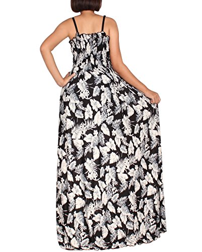 The WomenLand Women Plus Size Maxi Dress Beach Party Summer Christmas Holiday Evening Wear Boho Strapy B&W Leaves Prints (5X)