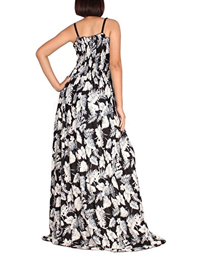 Women Plus Size US14 US16 Maxi Long Dress Party Vacation Evening Wear Casual Christmas Gift For Her Holiday Boho Strapy B&W Leaves Prints (XL)