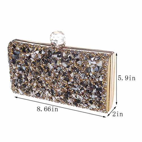 Product Description "FASHIONROAD" believes every girl deserve one clutch purse fits her well. We devoted ourselves to design chic and high quality bag for every party girl. Join us, get one "FASHIONROAD" clutch purse, be the Queen of the night Features: MATERIAL: PU Leather CLUTCH SIZE: 8.66 (L) * 5.9 (W)* 2 (H) Inch COLOR: Silver/Gold/Black INCLUDE: 1 * Clutch Purse Why You Choose Our Clutch Purse < UNIQUE DESIGN QUALITY GUARANTEE > This clutch purse is made of high quality PU leather, covered with shinning rhinestone, chic and luxury. "FASHIONROAD" is a brand register in US, only sold by "Fashion Road", we guarantee every product quality, you can buy any product manufactured by us without worry < BIG CAPACITY SAFE CLOSURE > This clutch purse can fit everything you need (cell phone, eyeglasses , coin purse, lipstick, a few bobby pins).The clasp closure which embedded rhinestones is convenient for you to open and close, and AVOID YOUR BELONGINGS SLIPING < CARRYING OPTIONS OCCASIONS > You can hold this clutch purse IN YOUR HAND or you can also use it as a SHOULDER BAG or CROSS BODY BAG with the chains coming with the bag. Perfect for wedding, party, prom, just get this clutch purse to have a wonderful night About us "FASHIONROAD" is a US regestered brand, we are a company which is always committed to offer you chic and high quality product. We love our customer, if you have any question, we will always be there trying our best to address any issue for you. Do not hesitate add our product to your cart, our product will never let you down 0