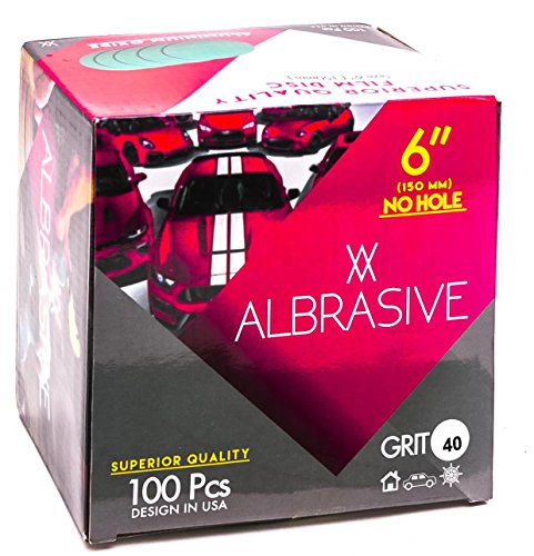 ALbrasives Velcro Hook Loop Sanding Discs 6 Inch No Holes, 100 Pack, Made of Aluminum Oxide, Green Film (P40 Grit)