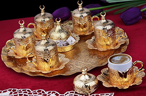 (Gold Case)/Kitchen Dining/Tableware/DIRECT FROM USA/HIGH END Gold plated METAL Coffee Set for Turkish, Arabic, Greek and Espresso coffee for 6 - Ma...