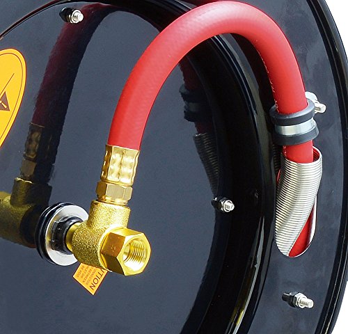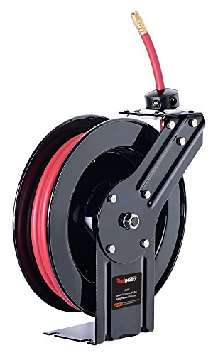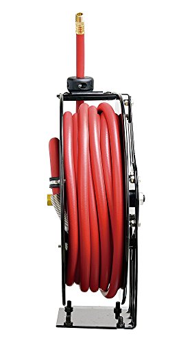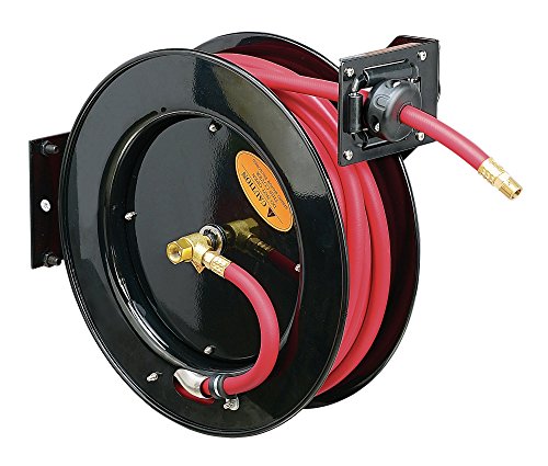 ReelWorks L805083A Steel Retractable Air Compressor/Water Hose Reel with 3/8" x 25' Hybrid Polymer Hose, Max. 300 psi