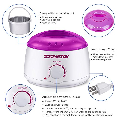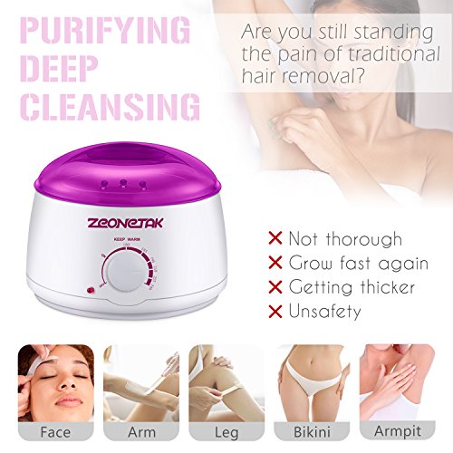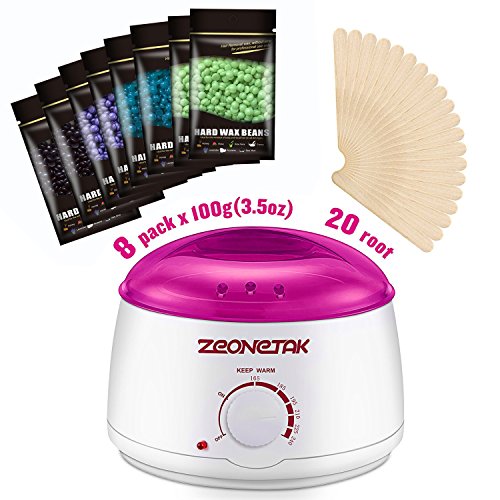 Wax Warmer, Zeonetak Hair Removal Waxing Kit Hair Remover Tool + 8 Pack x 3.5oz Hard Wax Beans + 20 Wax Applicator Sticks, Overheat Light Off Protection