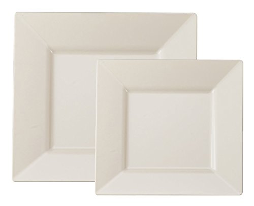 Table To Go 'I Can't Believe Its Plastic' 225 Piece Set - 75 9.5" Dinner Plates, 75 6.5" Salad Plates & 75 18 Oz Bowls, Collection - Square Pearl, Color - Bone