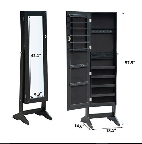 HomCom Mirrored Jewelry Stand with Feet - Black