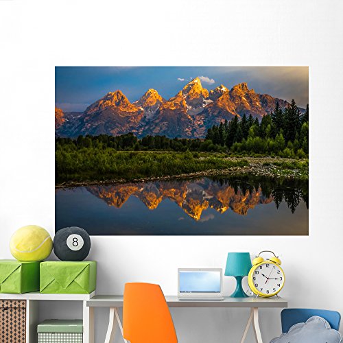 Wallmonkeys WM361196 The Dramatic Colors of the Grand Teton Mountains Reflecting in the Water on a Clear Summer Morning Peel and Stick Wall Decals (72 in W x 48 in H)