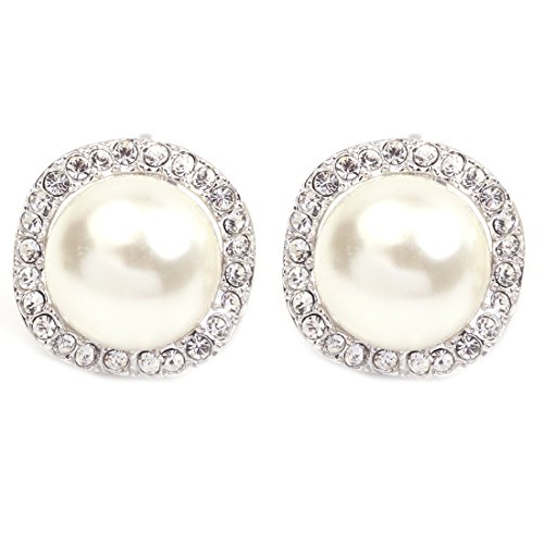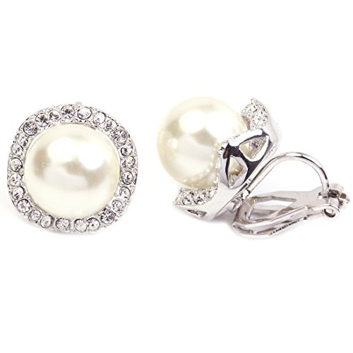 FC JORY White Gold Plated Simulated Pearl Crystal CZ Clip-on Earring