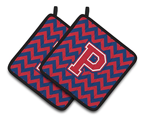 Caroline's Treasures CJ1054-PPTHD Letter P Chevron Pot Holders (1 Pair), 7.5" x 7.5", Yale Blue/Crimson