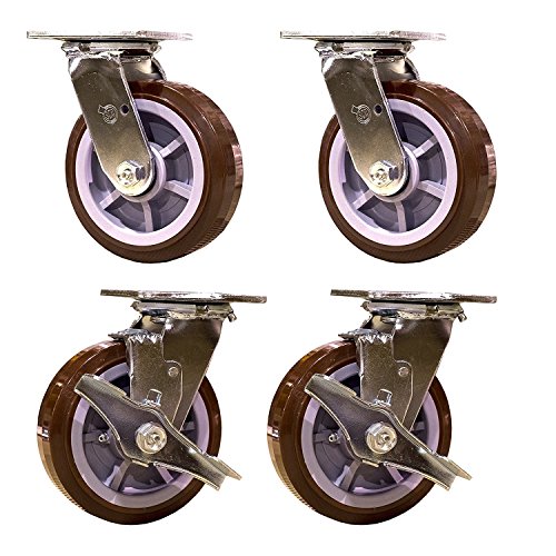Service Caster SCC-30CS620-PPUR-2-TLB-2 Heavy Duty Polyurethane Swivel Casters with Brake, 6" Size (Pack of 4)