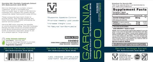 - Feature : Clinically-Proven Garcinia Cambogia Extract (HCA): Increase body fat reduction & promote lean body definition.* / Standardized to contain 60% Hydroxycitric Acid (HCA). Hydroxycitric Acid is the active ingredient in Garcinia Cambogia and Garcinia500 provides the HIGHEST potency. Blended with high quality Potassium and Calcium which may support maximum absorption.* / 500 mg per vegetarian capsule / 120 capsules per bottle, Garcinia500 consists of the HIGHEST quality Garcinia Cambogia Extract, Potassium & Calcium to aid absorption. NOTHING else...NO fillers, NO binders, NO food colorings. This product is gluten free, yeast free, dairy free, sugar free, wheat free, and free of harsh chemicals or stimulants.* / Suppport appetite control and "binge eating" by increasing seratonin levels, leading to better sleep and mood.* / Made in a cGMP inspected facility in USA - Lose Weight or 100% Money Back Guarantee