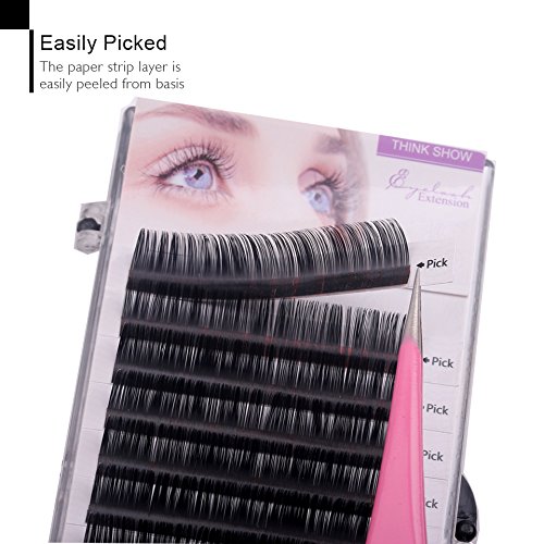 THINKSHOW Long Silk Fake Eyelash 0.15 C Curl 100% Handmade False Eyelash Extension(0.15 C 8 10 12 14mm)