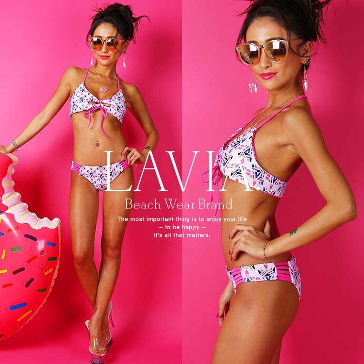 | 商品特徴 | LAVIA(ラヴィア)から新作のプチプラ水着が入荷しました。ハッピーカラーがビーチやプールで注目度間違いなしのPOP柄水着です。トップスの中心部にはチラ見せのリボンとレースアップ、バックはデザイン紐になっていてビビットなピンク紐がとってもキュートです♪着脱しやすい形で着苦しくなくビーチで思いきり遊びたい方にオススメ♪ 【特徴】 ビビットなピンクの紐とホワイトベースのPOP柄は焼けた肌にベストマッチ。調節部分がないのですっぽり頭からかぶれて着脱しやすく、デザイン性のあるバックスタイルで後ろ姿はお洒落に♪ |