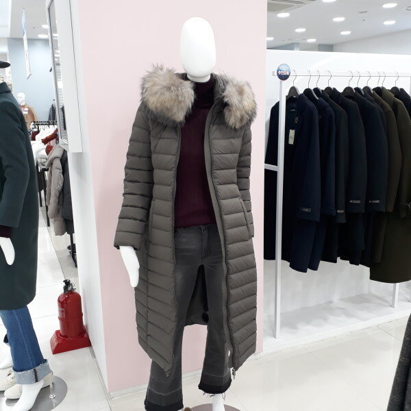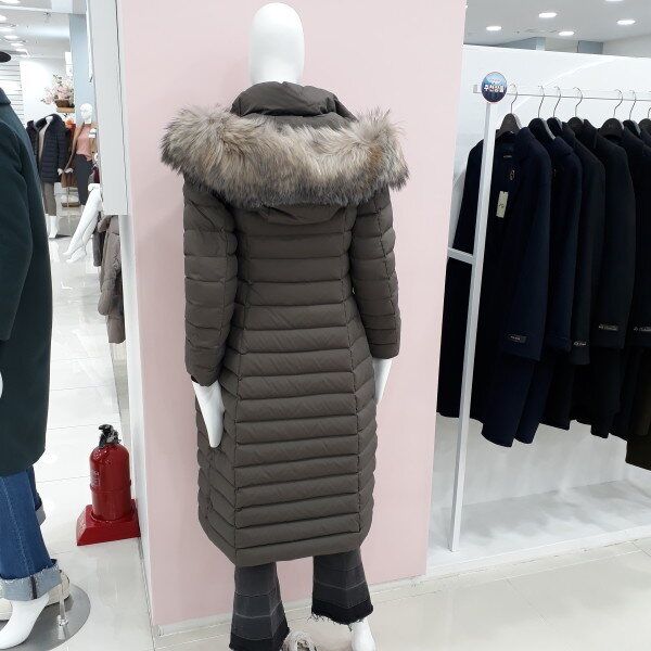 정말 롱롱~~~롱한 다운입니다 카키 이긴 한데요 브라운이 믹스된 색감으로 이쁘게 빠?어요~ 허리 라인 들어갓구요~ 천연퍼 라푼퍼탈부착 가능해요~ 탈착시 카라형 형태입니다 퍼는 목선전체 덮히는형이예요~ 전체적으로 부드럽습니다~ 총기장115cm~