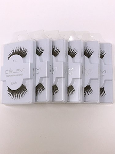 #15 Celavi, 100% Human Hair False Eyelashes 6 Pairs, Made in Indonesia