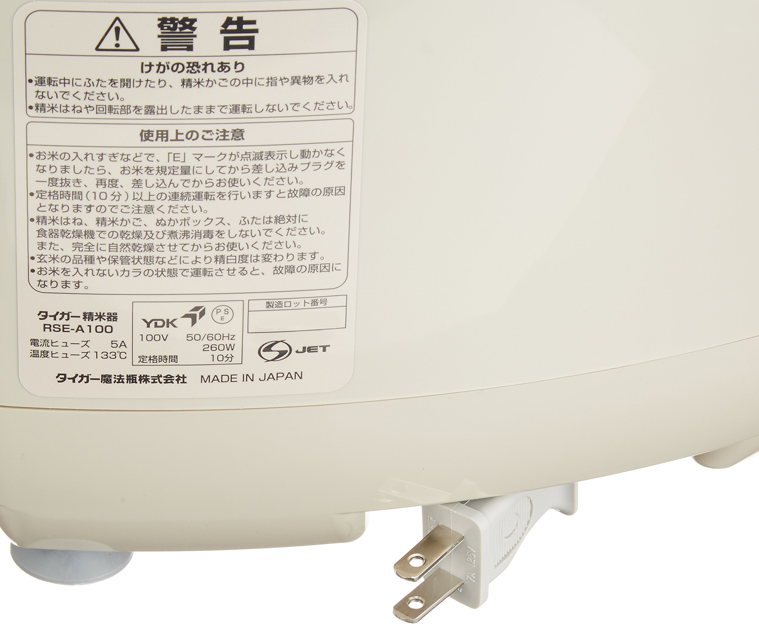 "Tiger rice polishing rice (5 grade) RSE - A 100 - CU" is a rice mill that can polish rice and rice as much as you want to eat without using water.