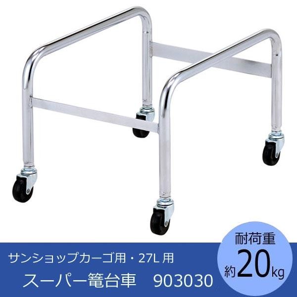 スーパーの籠を重ねて運べる専用台車です。 製造国:日本 商品サイズ:(外寸)438×338×305mm、キャスター径:φ50 ※サプライヤー直送品 ご注文後2~3営業日後の出荷となります【商品名】三甲 サンコー サンショップカーゴ用・27L用 スーパー篭台車 903030