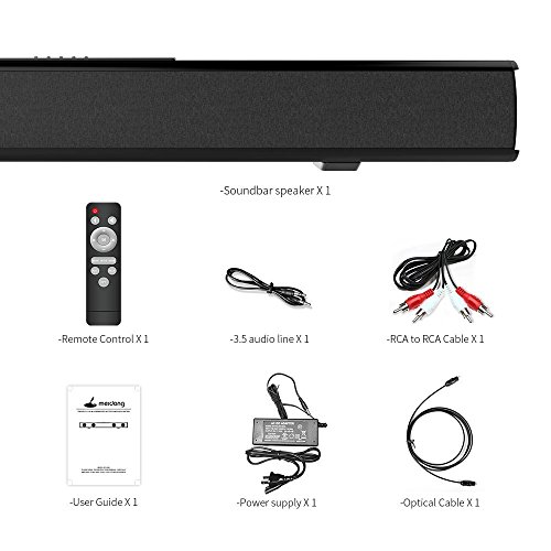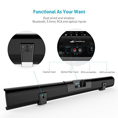 -. Title : TV Sound Bar, Meidong Soundbars for TV 2.1 Channel 40 Watt 37-Inch 4 Speakers Strong Bass Wireless and Wired Bluetooth Audio Speakers Included Optical Cable, Remote Control, Wall Mountable
