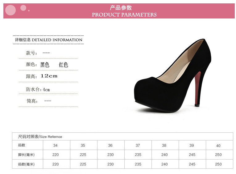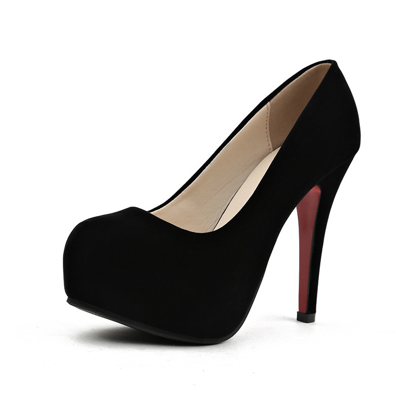 高跟鞋12cm细跟圆头单鞋防水台秋季女绒面百搭黑色礼仪鞋