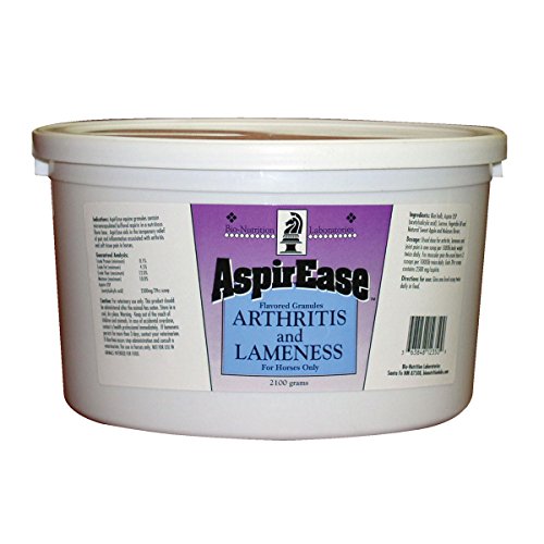 Studio : Bio-Nutrition Publisher : Bio-Nutrition Binding : Health and Beauty Product Description Aspirease equine granules contain micro-encapsulated buffered aspirin in a nutritious highly palatable flavor base. Aspirease aids in the temporary relief of pain and inflammation associated with arthritis, and soft tissue in horses. Apple mollases flavored. 1-3 scoops per 1000 lbs (14-28 days). SAME DOSEAGE SMALLER SIZE LESS FILLER 0