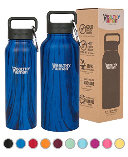 Healthy Human Water Bottles - Cold 24 Hours Hot 12 Hours. Vacuum Insulated Stainless Steel Double Walled Thermos Stein Flask with Carabiner & Hydro Guide