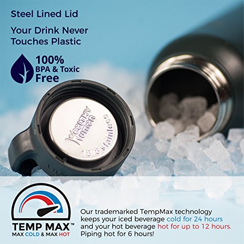 YOUR DRINK NEVER TOUCHES PLASTIC: The Healthy Human Stein lightweight water bottles feature a food grade 18/8 Stainless Steel Lined Lid that is 100% Leak Proof with a comfortable to carry handle