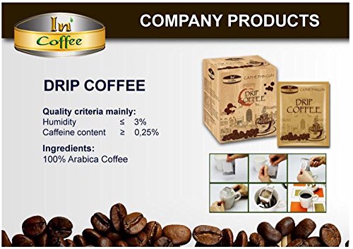 IN COFFEE - DRIP COFFEE - (CA PHE PHIN GIAY) MEDIUM ROAST PREMIUM BRAND IN VIETNAM. 100% PURE PREMIUM ARABICA GROUND COFFEE BEANS. 1 BOX = 10 PACKS. NO FILTER NEEDED, JUST ADD WATER!!