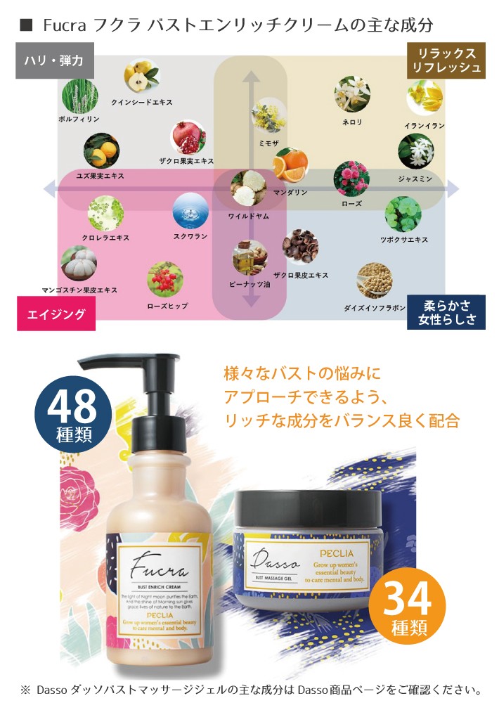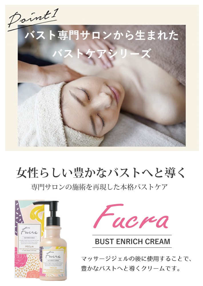 女性らしい豊かなバストへと導く、バストケアクリームです。 PECLIA ペキュリア FUCRA フクラ バストエンリッチクリーム 150ml バストケア マッサージ ボリューム ハリ 弾力 サロン用 送料無料