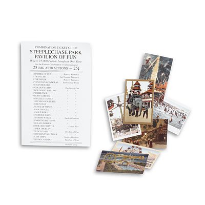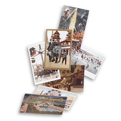 - Seven colorful postcards of Coney Island attractions with sticker backings