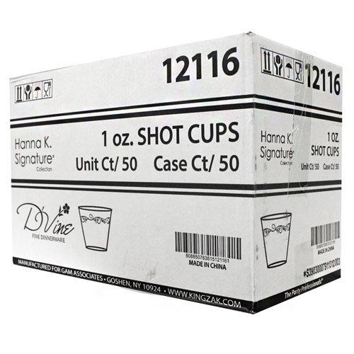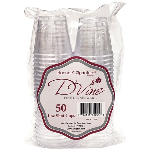 Hanna K. Signature Collection 50-Piece Heavyweight Plastic D'Vine Shot Cups, 1-Ounce