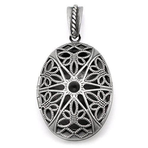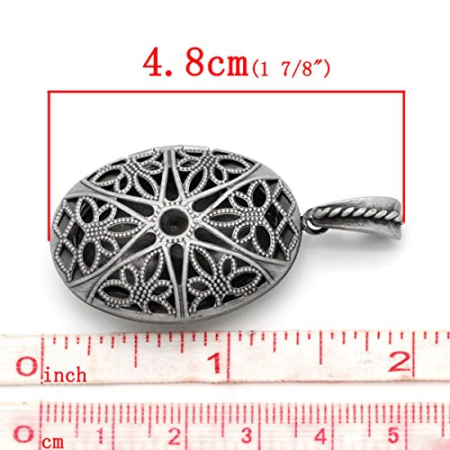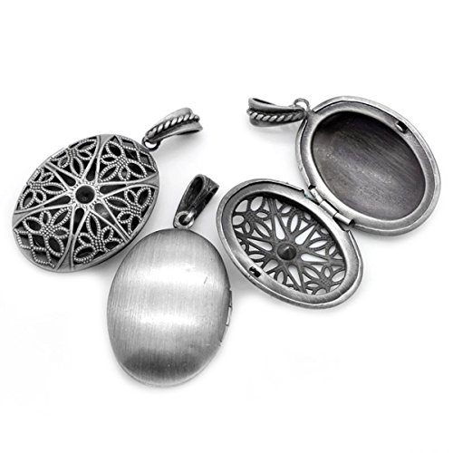Housweety 3PCs Frame Pendants Hollow Picture Locket Pattern Carved Oval Gunmetal 1 7/8"x1"
