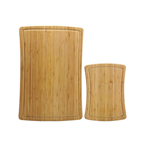 [Product Information]- SET OF 2: This Bamboo Cutting Board set includes (1) 12-Inch by 18-Inch and (1) 8-Inch by 11-Inch cutting board.