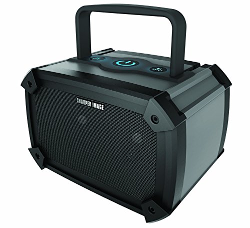 -. Feature : The Durable & Red Bluetooth speaker from Sharper Image delivers a high-definition stereo sound and allows you to control music playback wirelessly from any Bluetooth-enabled device. / Its tough, splash-proof exterior (IPX4 rating) makes it ideal for a day at the beach or a picnic in the park, and its versatile carrying handle can also be used as a stand to prop the speaker up. / The rechargeable lithium-ion battery provides hours of playing time, while a convenient auxiliary jack lets you use the speaker as a wired unit. / Its shock-absorbing design ensures continues play, while its splash-proof construction makes it a safe bet for outdoor setups. / Features: Equipped with Bluetooth technology. Control music wirelessly or from the unit. High-definition stereo sound. Red, splash-proof exterior (IPX4). Carrying handle can be used as a stand. 3.5mm auxiliary jack for wired use. Rechargeable.