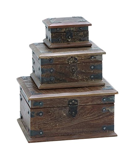 -. Title : Woodland Imports Wooden Modern Reclaimed Box with Storage Space, Set of 3