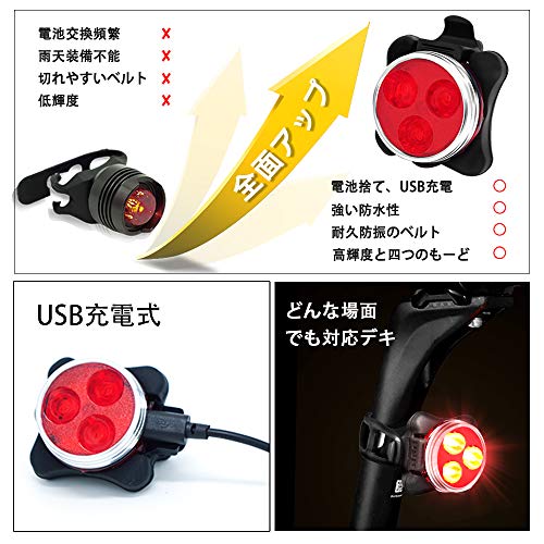 ◆【充電方式】新しいテールライトはUSB充電式で、電池を交換する必要がありません。旧版より、電池を買うお金を節約するだけではなく、自然にもっとやさしいです。