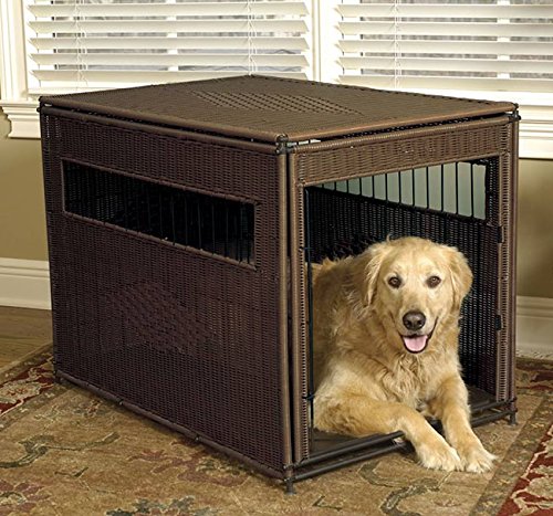 Studio : Orvis Publisher : Orvis Binding : Misc. Product Description Provide your dog with a comfortable, secure crate that blends in with your home's decor. Rhino-wicker looks great, provides ventilation, and won't absorb fluids or odors. The spring-loaded door swings wide open, or swings inside and latches easily to the inside wall (ideal for dogs who prefer a come-and-go den. The pan flooring catches accidents and is removed easily for cleaning. No-slip feet protect your floors. Tools are included for easy assembly. In brown. Measure height at the shoulders. Metal/nylon. Cleans easily with soap and water. Imported. Free Standard Shipping on all Orders of $150 or more for all Orvis Products. Limited Time Only! 0
