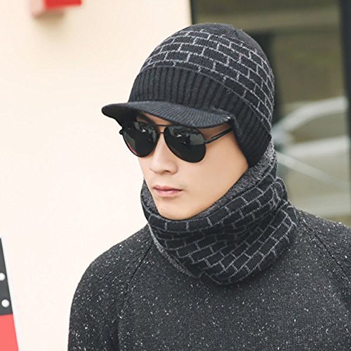 Product DescriptionType: Hat Scarf SetGender: Men'sMaterial: Faux Woolen Yarn, PlushStyle: FashionSeasons: WinterOccasions: Daily Life, Outdoors, Travel, Party, Sport, etcFeatures: Soft, Warm, Brick PatternSize: One Size Fits mostPackage Includes:1 x Hat1 x Scarf--------------------------------------------------------Package Including0