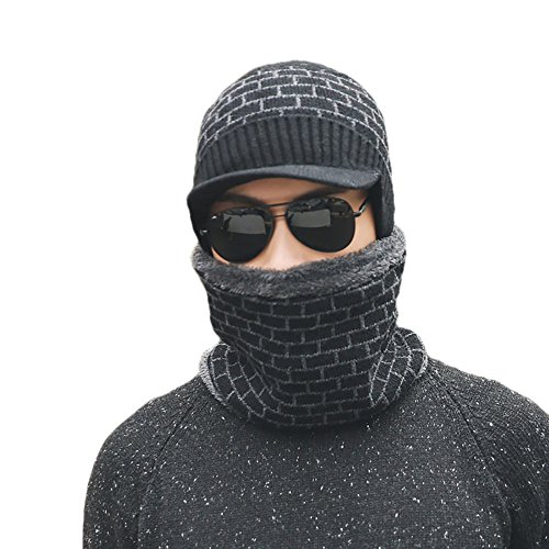 (856store)/Accessories/Cold Weather Accessories/DIRECT FROM USA/Mens Fashion Brick Pattern Winter Soft Warm Cap Neck Warmer Scarf Wrap Set