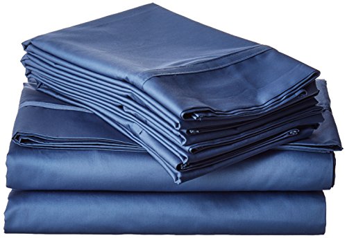Tribeca Living 6 Piece 500 Thread Count Egyptian Cotton Sateen Deep Pocket Sheet Set, Midnight Blue, King