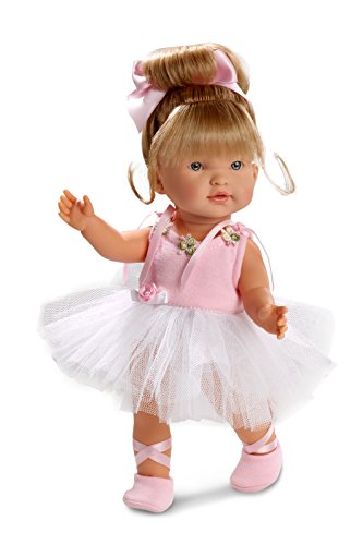 Valeria ballet doll is ready for her performance with her white tutu and ballet booties with pink ribbons that tie around her ankle, just like actual ballet slippers. Life-like blonde hair and blue eyes. Baby doll play encourages nurturing and teach children about themselves and the world around them. All Llorens dolls are crafted in Spain. Fully jointed moveable vinyl doll. Recommended for ages 3 years+.Feature