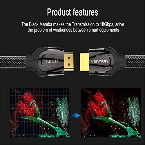 Vention 10ft 2.0V Braided HDMI Cable Adapter HDMI to HDMI Cable HDMI 4K 3D Cable for HD TV LCD Laptop PS3 Projector Computer 3M