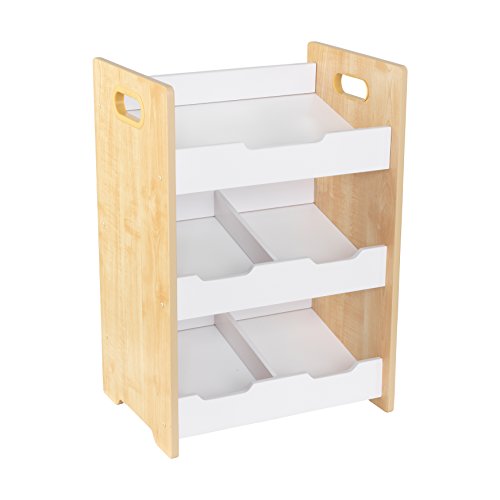 This multi-bin unit is a Super sturdy organizer made for keeping your playroom free of clutter. Three angled shelves makes it easy for kids to pick out their favorite toy or book and conveniently store them after play time.Feature