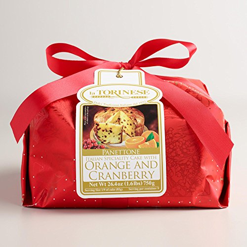 -. Feature : This festive, feather-light Italian sweet bread comes to you from Italy chock-full of oranges and cranberries. Bright citrus flavors give this traditional dessert a fresh new taste. / Naturally leavened with natural yeast / Made in Torino, Italy in an artiginal bakery / Wrapped in beautiful red, and silver shimmery paper finished with a bow