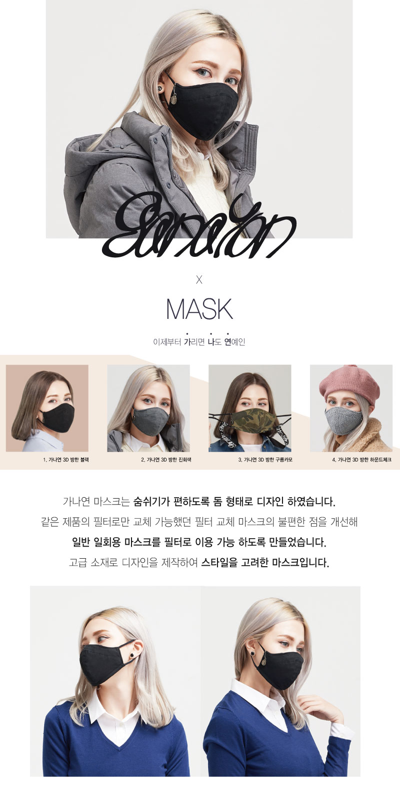 가나연 3D 필체교체형 방한마스크 :