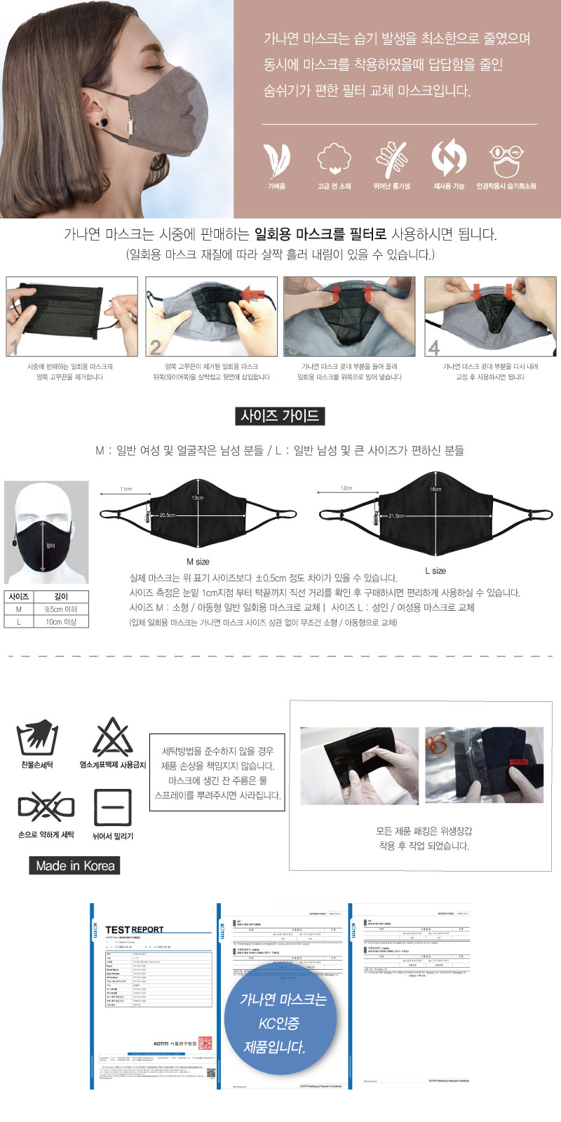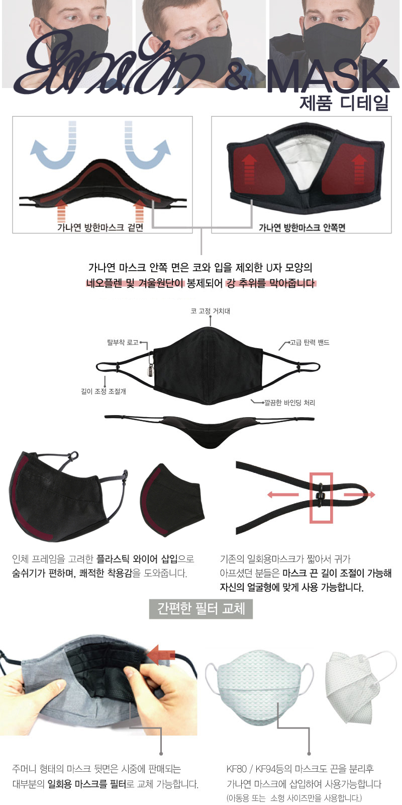 필터 교체는 일회용 마스크로 간편하게 교체!