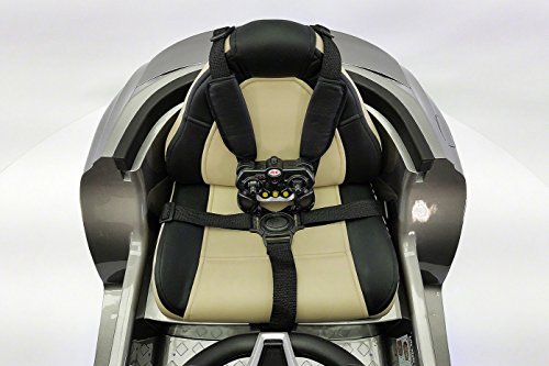 -. Feature : •12-Volts of Battery Power allow for two speeds Forward (2 - 4 MPH) + Reverse / •Leather Genuine Seat •Adjustable Seat Belt •Two Openable Doors •Trunk Space / •2 Engine Motors •110V Charger is included •Soft Start / •Aux plug in for Music •Multifunctional effects of sound • High Capacity Front/Rear LED Lights / •Bluetooth Parent Remote Controlled or Operate by Foot Pedal accelerator and Steering Wheel - For 2-5 Years Of Age