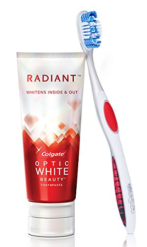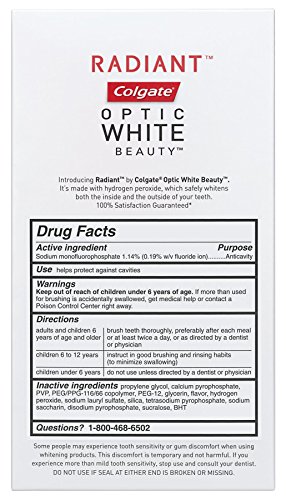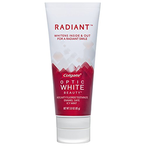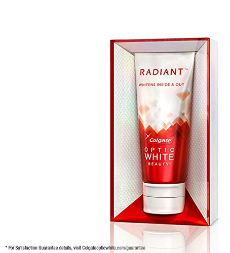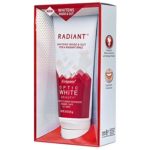 Be Radiant. Introducing Radiant by Colgate Optic White Beauty. Unlike most whitening toothpastes, it safely whitens the inside as well as the outside of your teeth with hydrogen peroxide, helping you to feel beautiful both inside and out. 100% Satisfaction Guaranteed (for Satisfaction Guarantee details, visit Colgateopticwhite.com/guarantee) and enamel safe for daily use.Feature