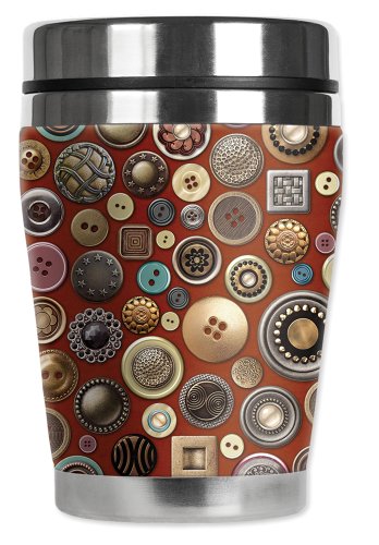 Mugzie Buttons "Mini" Travel Mug with Insulated Wetsuit Cover, 12 oz, Black